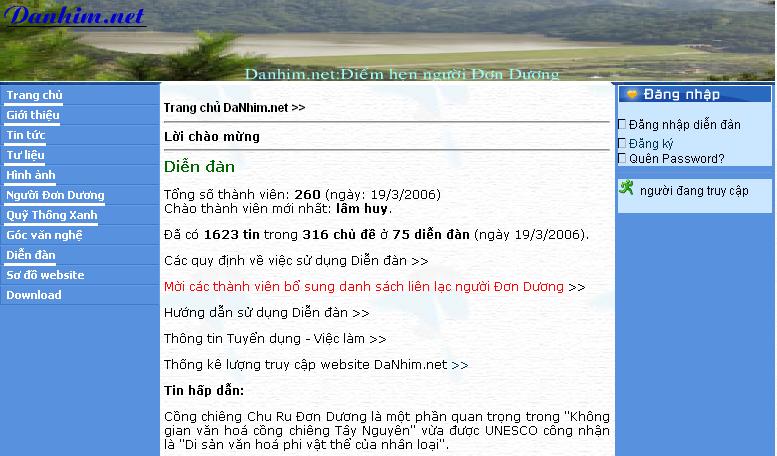 Giao diện chính thức của DaNhim.net: Điểm hẹn người Đơn Dương tháng 03/2006.