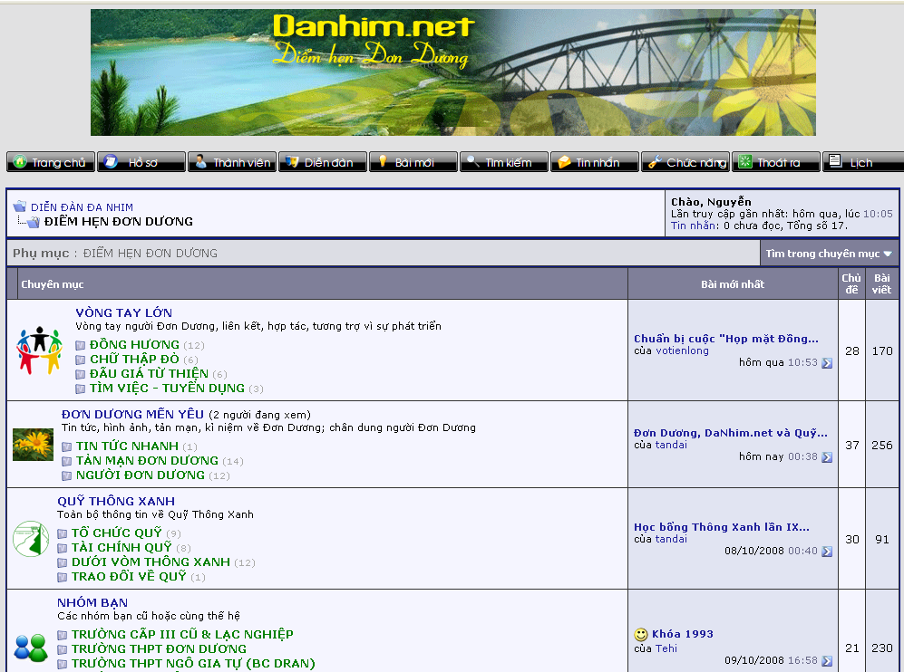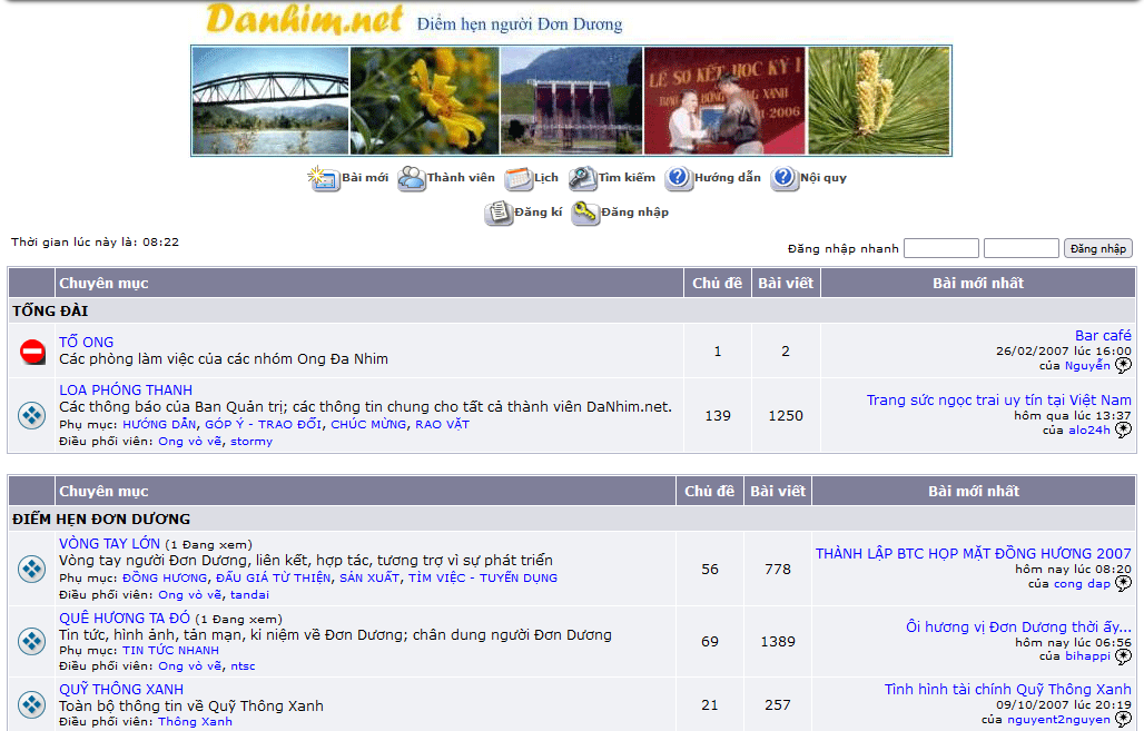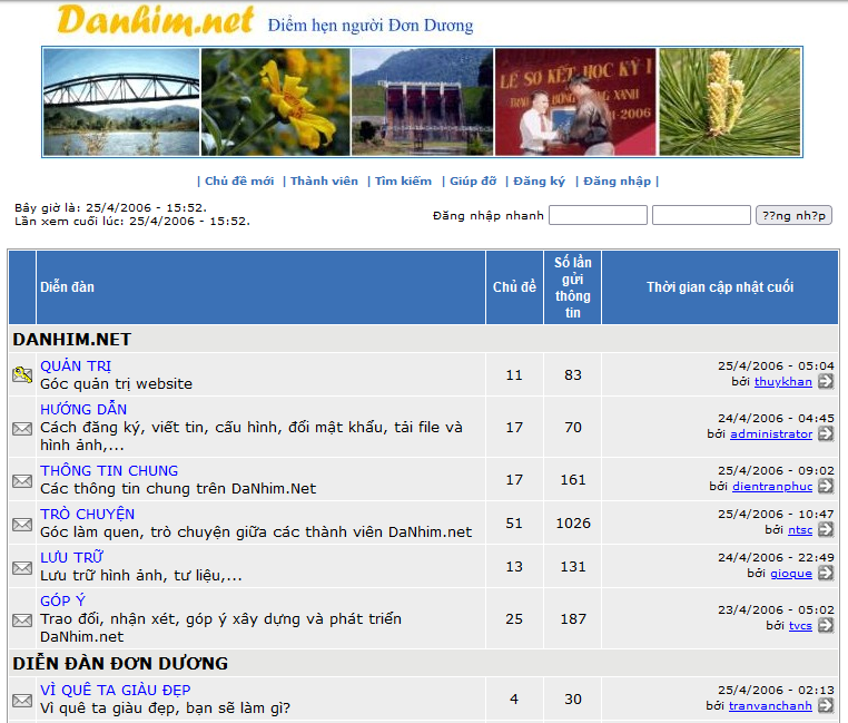 Cấu trúc Diễn đàn Đa Nhim mới sử dụng VBulletin vào tháng 10/2008.
