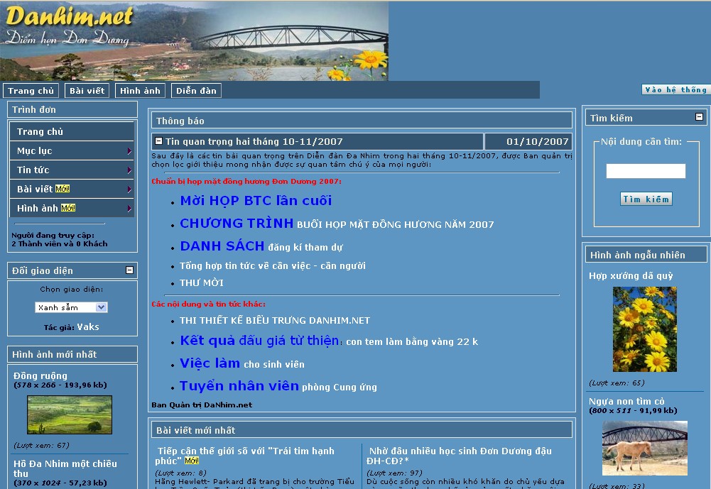 Giao diện tiếp đón của DaNhim.net sử dụng SkyPortal vào tháng 10/2007.