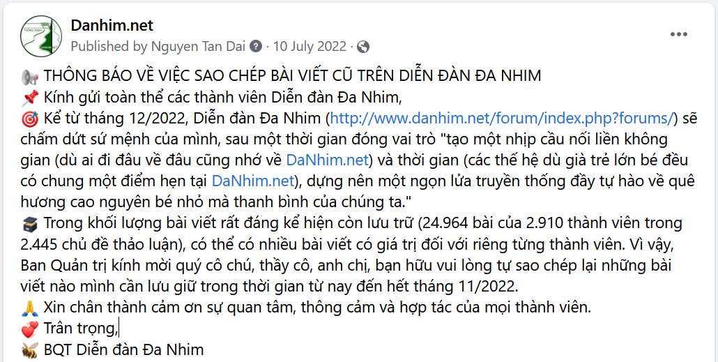 Thông báo chấm dứt sứ mệnh của DaNhim.net.