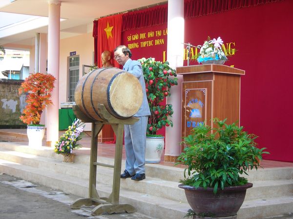 * Thầy Lê Hữu Túc, Phó Chủ tịch UBND Huyện Đơn Dương, đánh trống khai giảng năm học mới