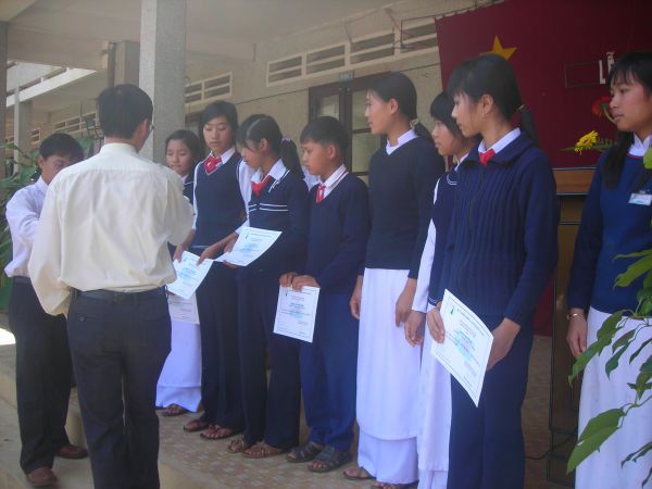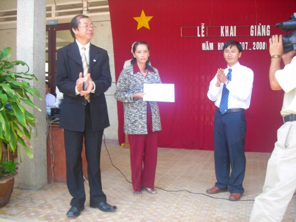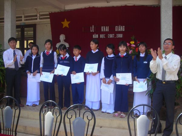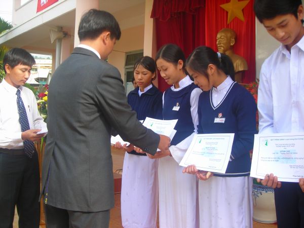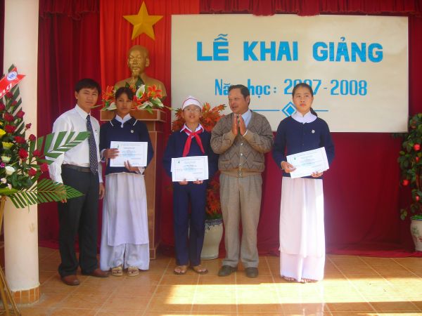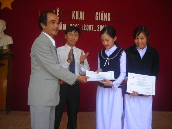 Lễ trao học bổng đã diễn ra ngay trong ngày khai giảng năm học, 05/09/2007, tại các trường, do anh Phạm Quốc Văn, đại diện BĐH Quỹ Thông Xanh về trao.