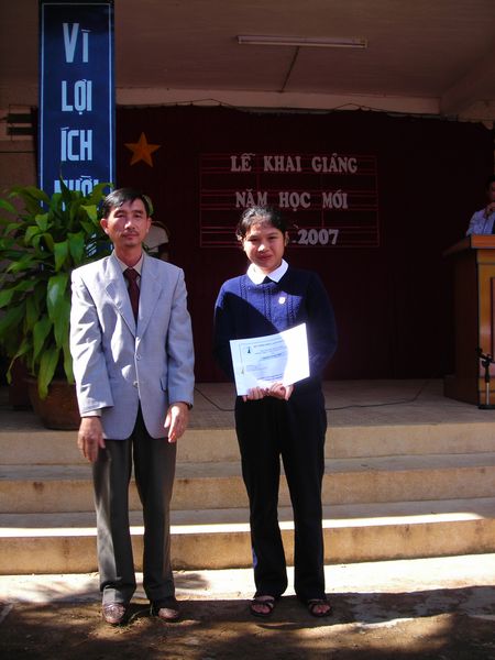 * Các em học sinh vượt khó còn học ở trường và phụ huynh của hai em đã lên đường đi học đại học