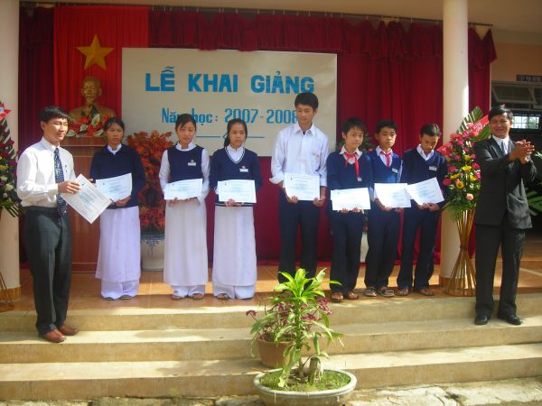 Lễ trao học bổng đã diễn ra ngay trong ngày khai giảng năm học, 05/09/2007, tại các trường, do anh Phạm Quốc Văn, đại diện BĐH Quỹ Thông Xanh về trao.