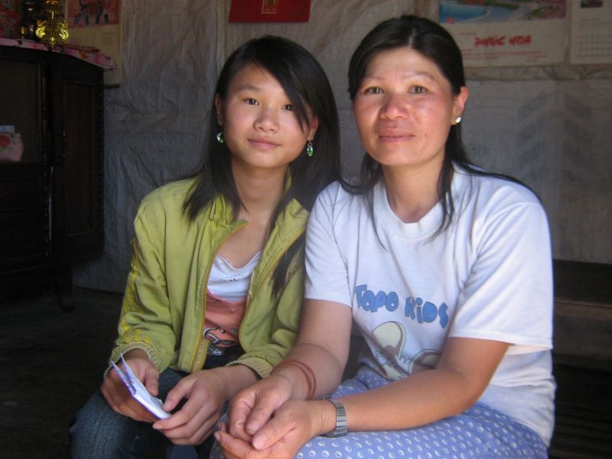 Còn mẹ bé Hiền - chị Bùi Thị Kim Cảnh - thì đã 13 năm nay luôn ở vậy thờ chồng nuôi con. Không có đất sản xuất, cũng không có vốn để buôn bán, chị phải đi làm thuê cuốc mướn để kiếm từng đồng lo cho con. Khi bé Hiền học tiểu học, chị cố tranh thủ để sau những buổi làm chạy về lo cho con bữa cơm. Nhưng kể từ khi cô bé lên lớp 6, đã có thể phụ mẹ, lúc chị kiếm được công việc nội trợ phụ giúp cho một gia đình buôn bán, thì chỉ sau khi nấu ăn dọn dẹp cho nhà chủ xong xuôi chị mới quay về nhà. Mỗi ngày, thường đến 19-20 h bé Hiền mới nhìn thấy mặt mẹ. Thức ăn mẹ mua sẵn từ buổi sáng, em tự nấu tự ăn, tự dọn dẹp tự học bài và... ngồi đợi mẹ về! Nhắc đến vòng tay yêu thương của mẹ, giọt nước mắt trẻ thơ tủi thân tôi đang nhìn thấy kia nhanh chóng biến mất, để lại nụ cười tươi tắn trên khuôn mặt rạng rỡ.